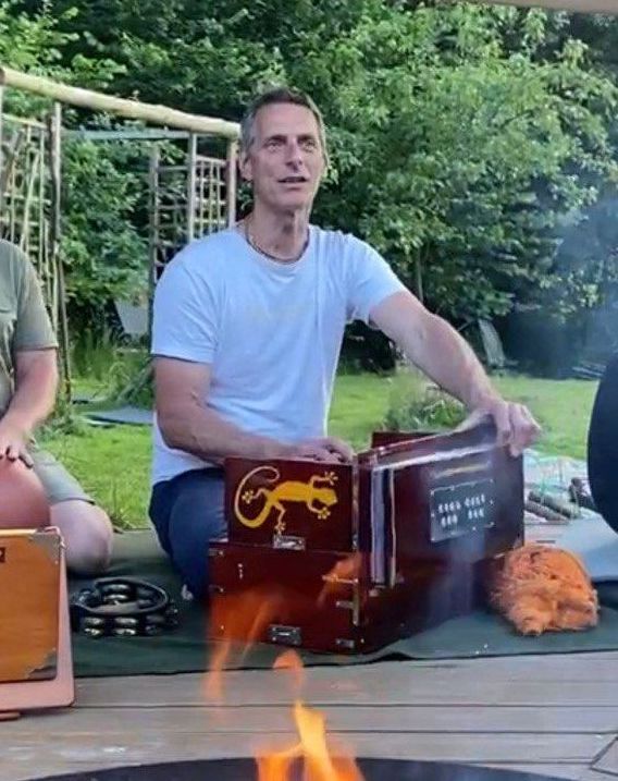 Am liebsten begleite ich mit der Djembe, spiele aber auch Gitarre und Harmonium und habe mich in meiner diesjährige Reise nach Indien in die hohe Kunst des Tablaspielens verliebt.