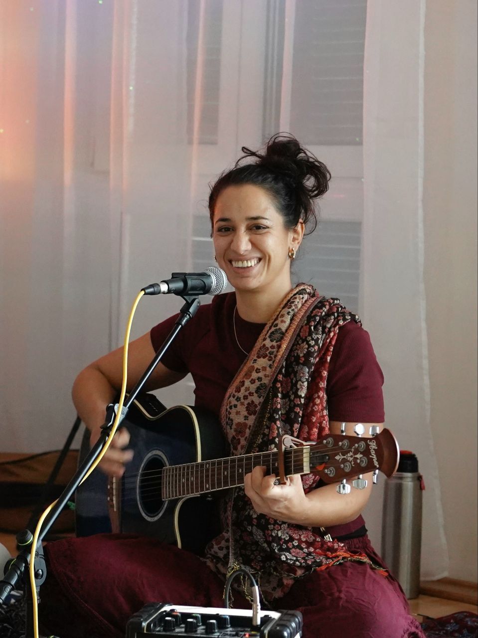 Bereits in ihrer zweijährigen Yogalehrerausbildung (2008-2010) hat sie sich tief vom Singen heiliger Mantras berührt und verbunden gefühlt. Seit einigen Jahren spielt sie Gitarre und Harmonium und gibt mit verschiedenen wundervollen Musikern eigene herzerfüllende Singkreise.
